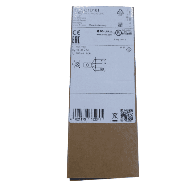 By combining precision sensing with robust protective features and long-term reliability, the IFM O1D101 provides engineers and system designers with a dependable solution for demanding industrial applications. Its compact housing, wide voltage compatibility, and safe Class 2 laser operation make it a versatile and cost-effective option for modern automation environments.