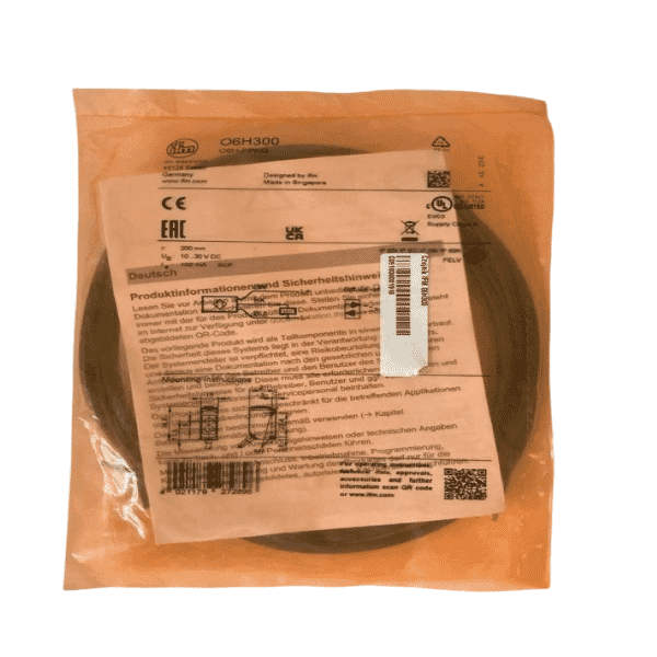 In summary, the IFM O6H300 diffuse reflection sensor combines accuracy, efficiency, and durability in a compact design. With its advanced background suppression, red light detection, and robust safety features, it is a dependable choice for industries seeking reliable and consistent object detection in automated processes.