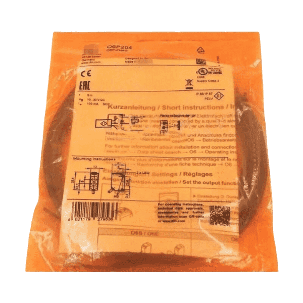 In summary, the IFM O6P204 retro-reflective sensor offers a combination of precision, efficiency, and robustness. With its polarisation filter, visible red light alignment, and reliable protection features, it provides a trusted solution for industries that demand consistent detection performance in automation and logistics environments.